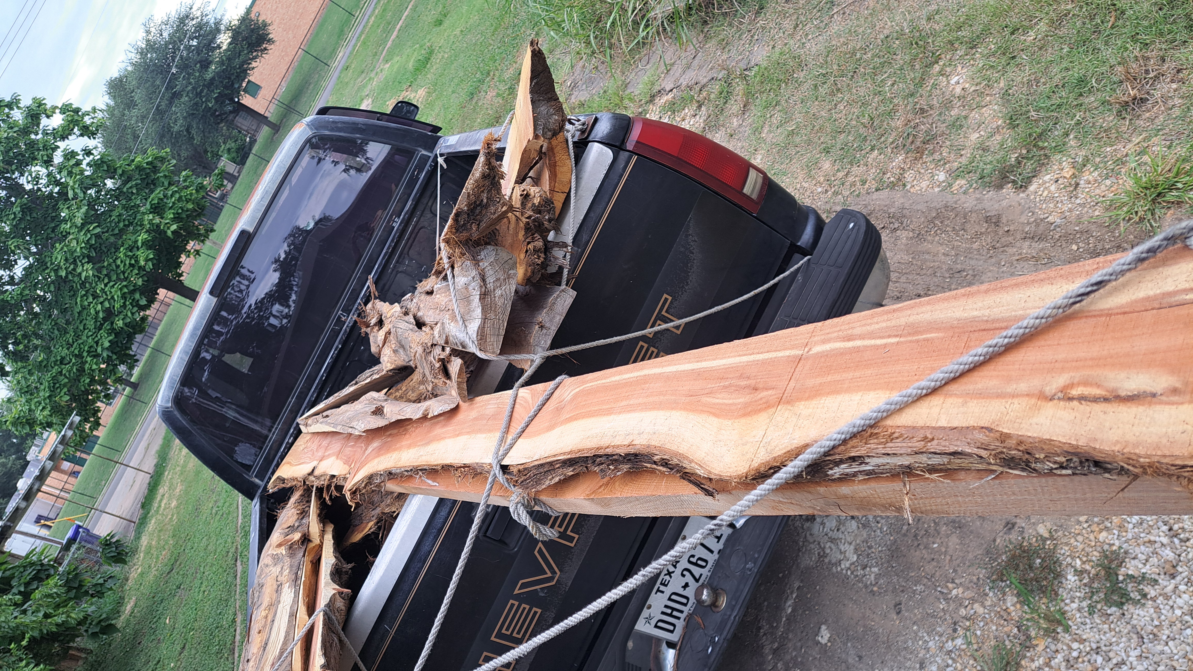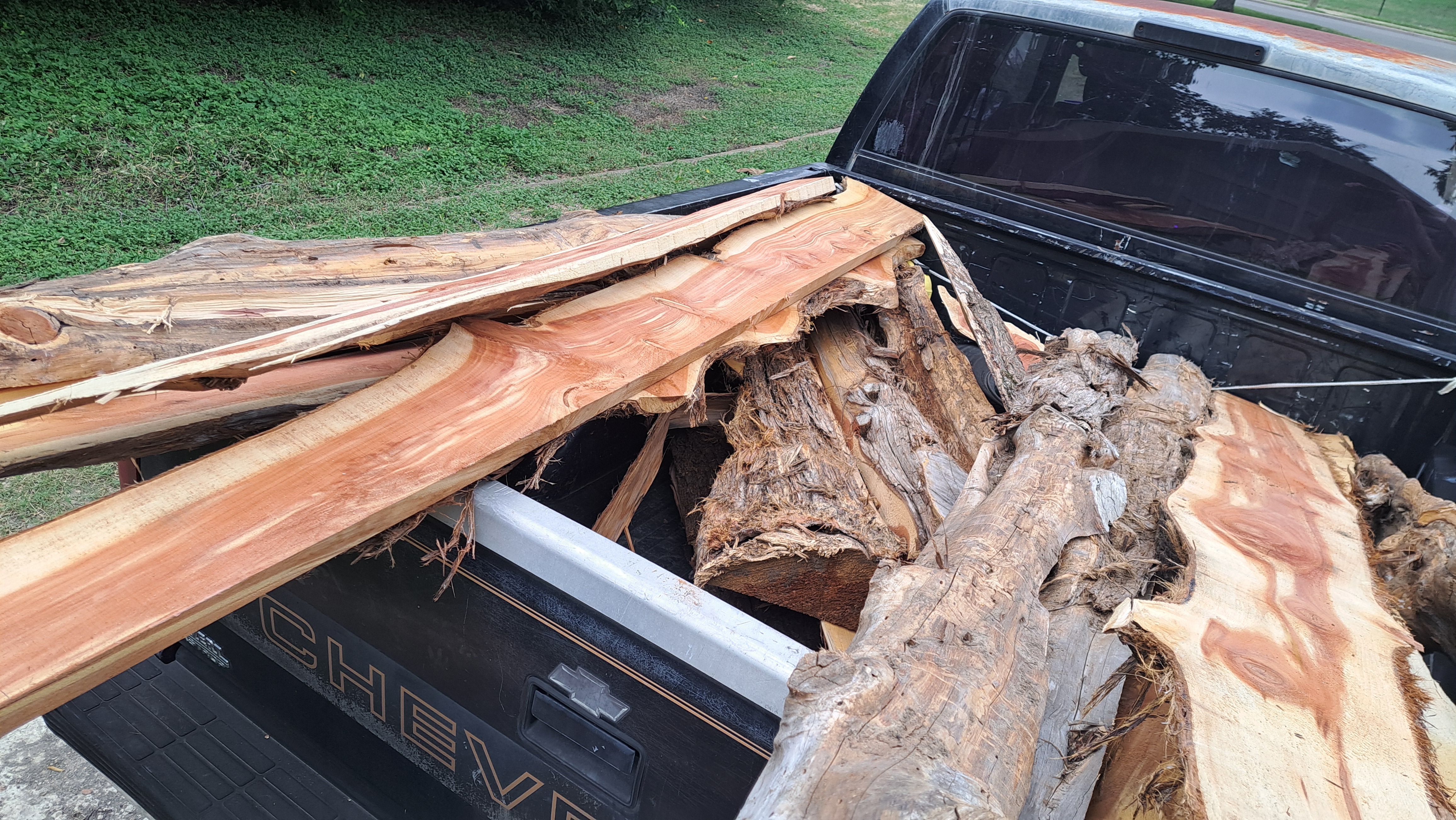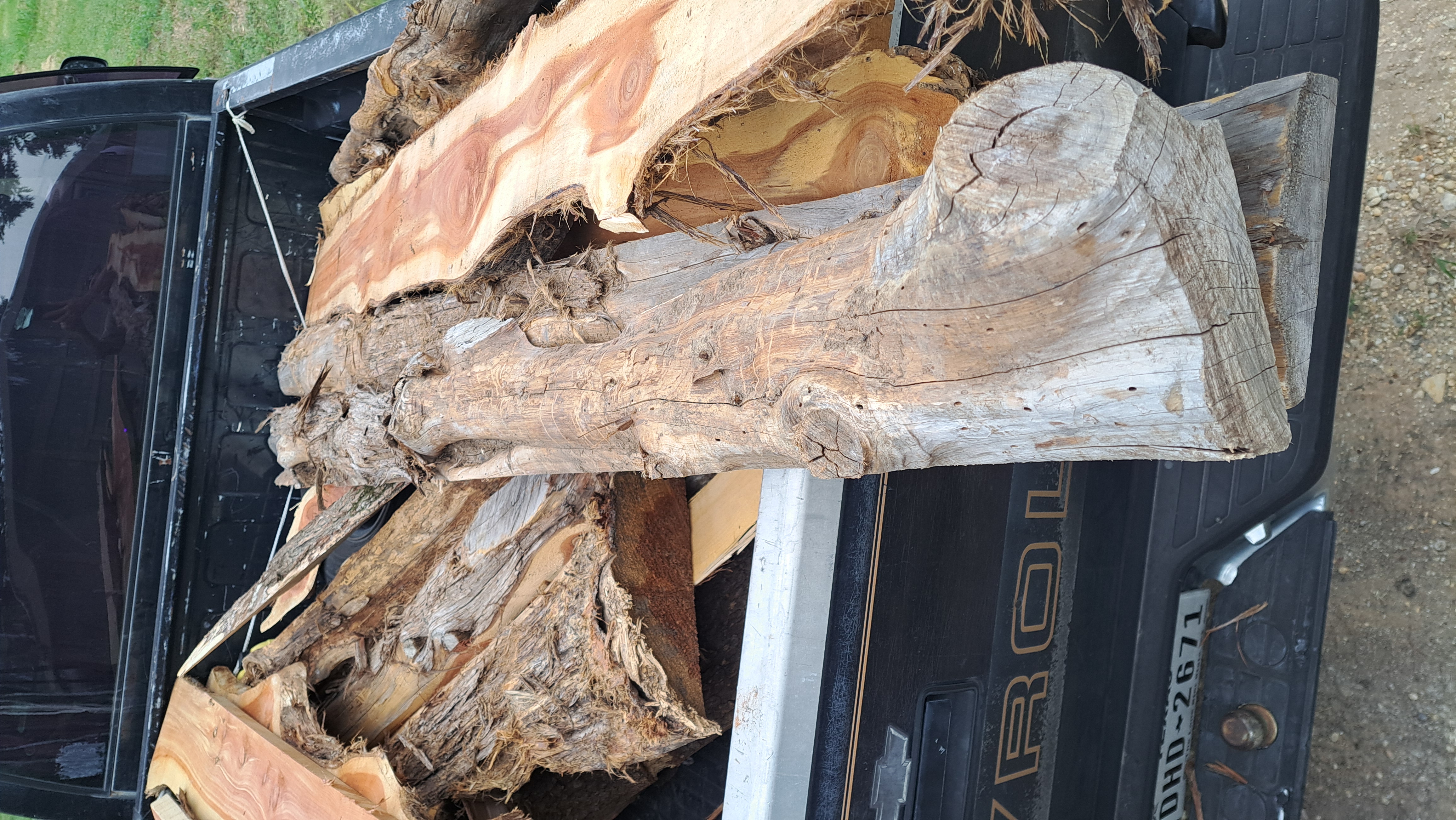 Since that picture I've gotten several more of what he calls "first cut" off the trees. Those are mostly bark on the original outside of the tree with a flat face. Mostly cedar but think there is also some oak or maybe pecan.
