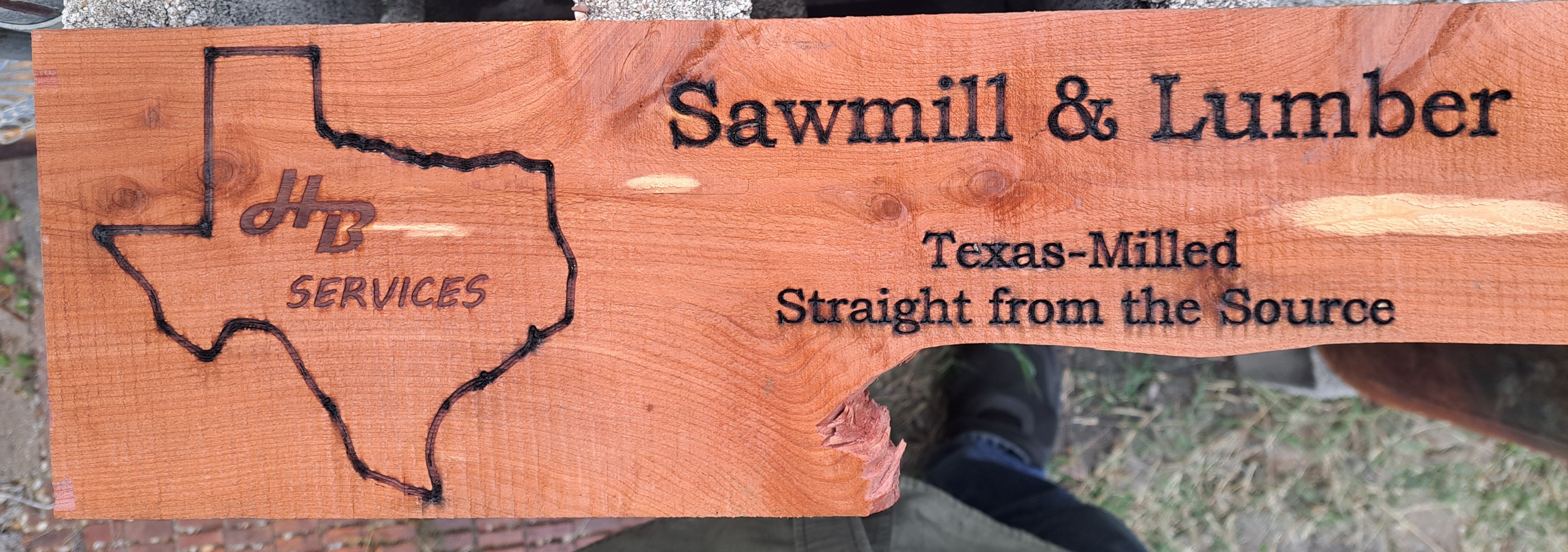 Great local sawmill. Got this piece of Red Cedar from him and the pieces down farther. He has a lot of wood I am interested in and will be a good source for real wood materials for signs, plaques and any other ideas you might have. This was also the first piece of real wood I engraved, so I think not too bad and now know more about how to improve on the next one.