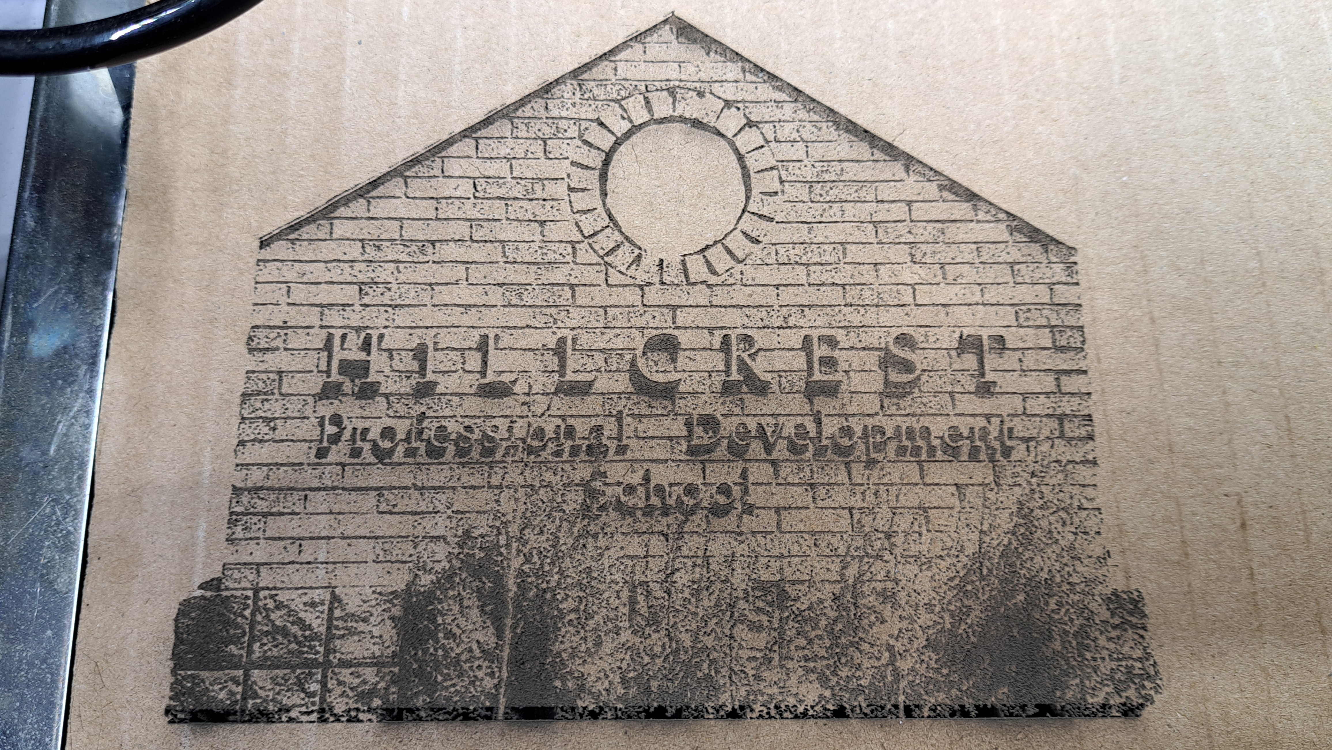 Test engraving on cardboard of the sign for a school nearby where I volunteer to help maintain their fish pond. Talking to them about maybe doing a brick fundraiser or something similar. This will go on a brick or paver soon. I like using cardboard for testing, cheap, no worry about messing up expensive materials, and it gives a decent engraving.
